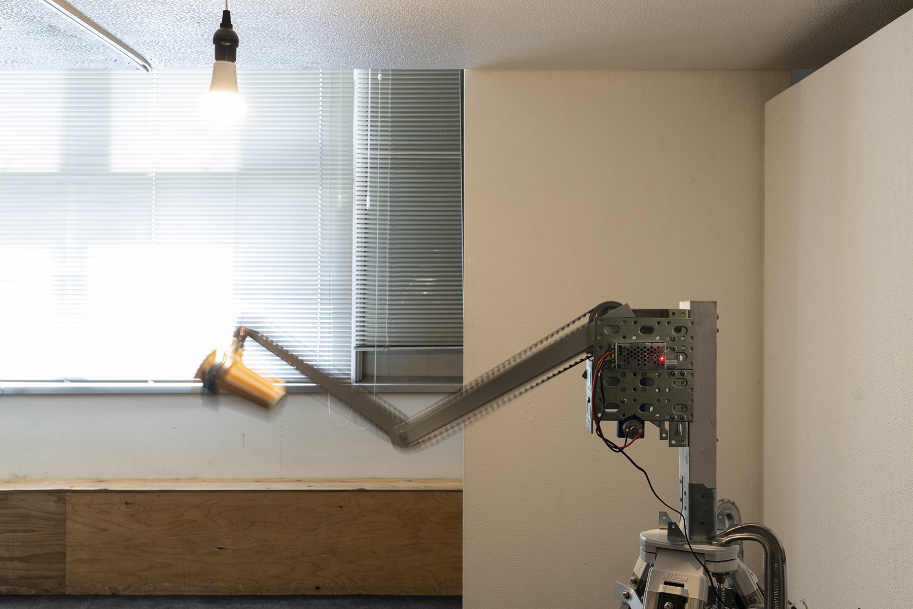 Material: Coins, paper cups, motors, toothed belts, aluminum, iron, stainless steel, wood, tripods, Human sensor, motion sensor LED light